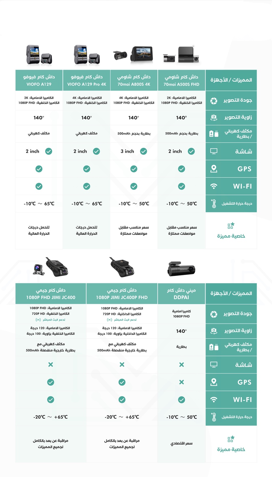 من اهم الاشياء اللي لازم تاخذها بالاعتبار وقت تشتري داش كام تتاكد انها تتناسب مع درجات الحرارة العالية بالسعودية.