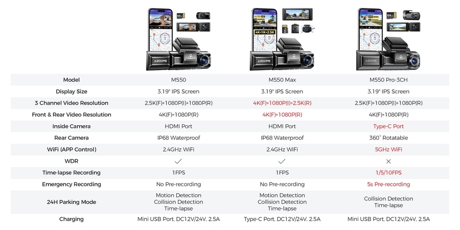 مقارنة بين الداش كام موديلات M من شركة AZDOME في متجرنا